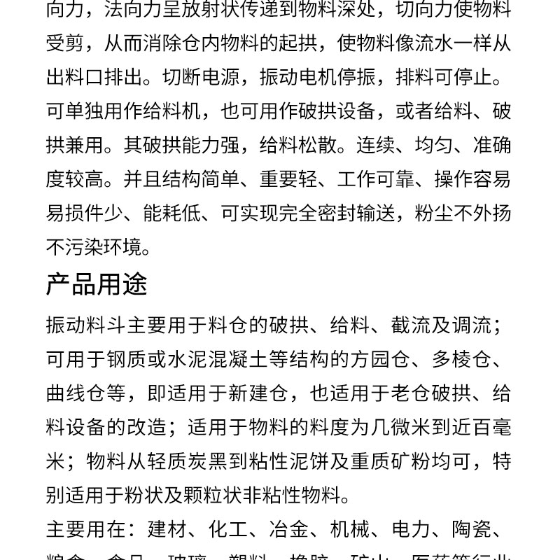 用途 | 于料仓的破拱、给料、截流及调流 | ||