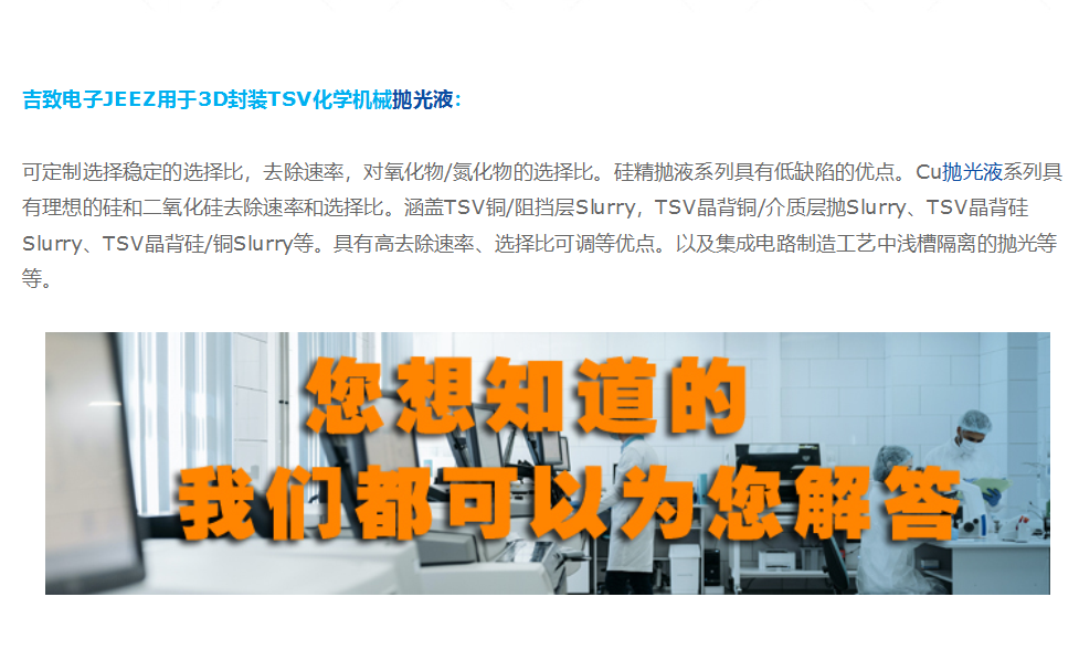 吉致电子CUCMP抛光液铜化学机械抛光材料金属平面研磨浆料厂家
