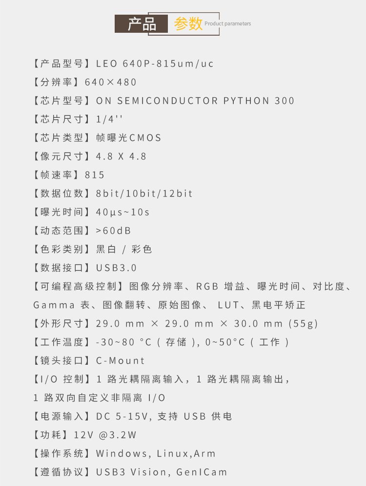杭州微图视觉CMOS工业相机LEO 640P-815um/uc 铁路检测 智能交通 分辨率 | 640 x 480 | ||