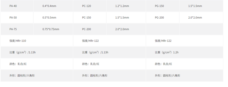 体积密度(g/cm3) | 0.93-0.96 | ||