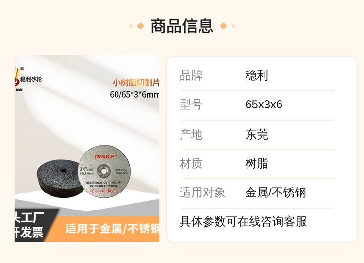稳利小树脂切割片65x3x6金属打磨源头工厂质量可靠