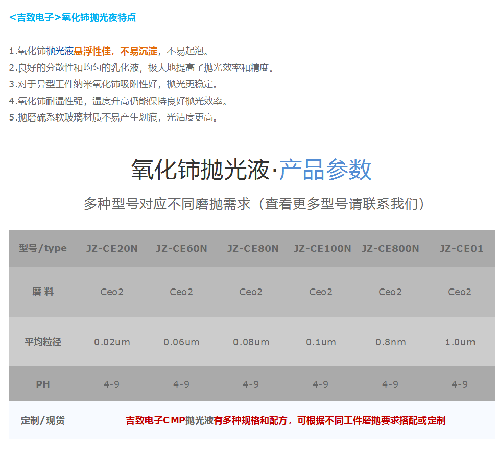 吉致电子氧化铈抛光液光学玻璃晶体抛光材料CMP化学机械抛光浆料