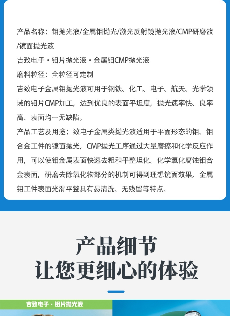 吉致电子钼镜抛光液单晶多晶金刚石研磨液反射镜CMP化学机械抛光