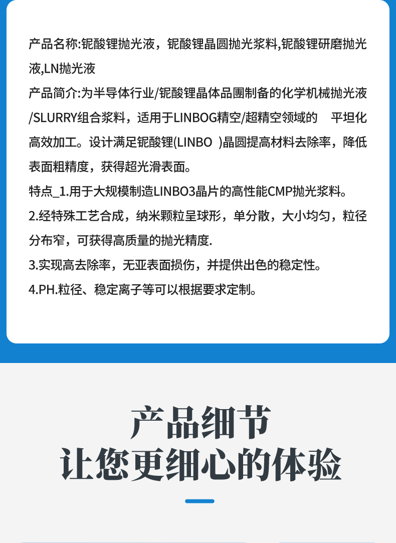 吉致电子钽酸锂铌酸锂抛光液晶圆芯片精抛液CMP化学机械研磨液