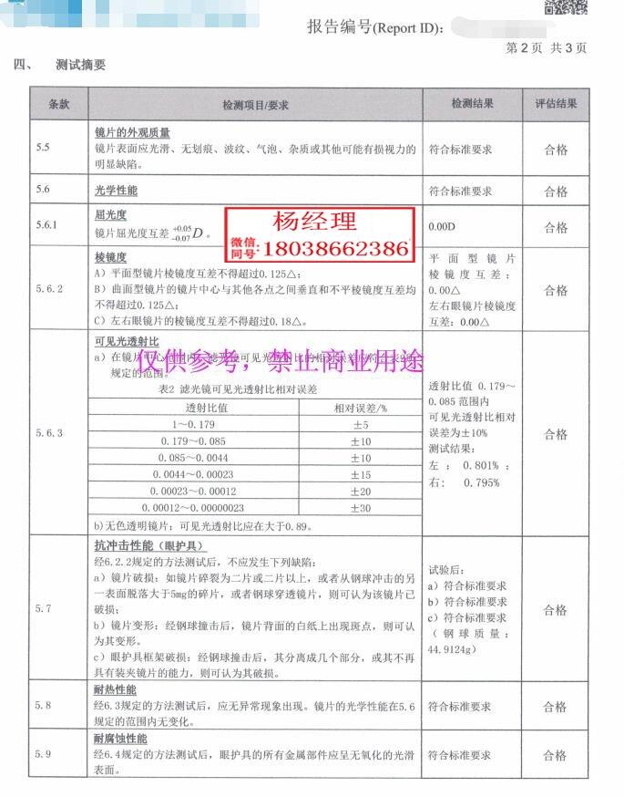 特殊说明:此测试项目的检测价格为套餐价,是按照护目镜国家标准进行全检。如果只测试当中的某些项目具体费用请咨询客服人员进行报价