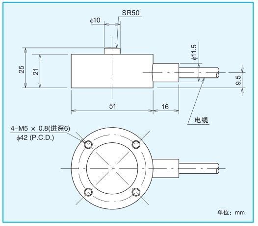 称重传感器CMM1J: 连接器规格、电缆另售品(RC019-6M)