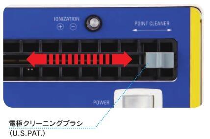 此外,它还配备有电极清洁刷(USPAT.NO.4,734,580),可以长时间保持较高水平的静电消除效果,并且只需左右滑动即可轻松清洁电极。