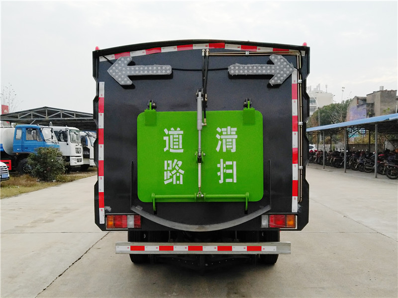 侧面防护由专用装置替代,可豁免;后防护材料为Q235,,连接方式为:焊接连接,断面尺寸为:100×50(mm),后部防护装置离地高度为:450(mm)。ABS及其控制器型号为:APG3550500A4,生产厂家为:浙江亚太机电股份有限公司。该车装备有垃圾箱,水箱,洗扫刷等专用装置,具有清扫和清洗功能.
