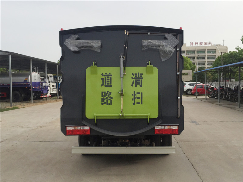 随底盘选装新造型前围下面罩。此车用于清扫路面,专用装置为封闭式车箱、扫刷。侧面防护用侧面装置替代,后防护材料为Q235,,连接方式为:焊接连接,断面尺寸为:130×50(mm),后部防护装置离地高度为:390(mm)。ABS系统型号为4460046300,生产企业为威伯科汽车控制系统(中国)有限公司。