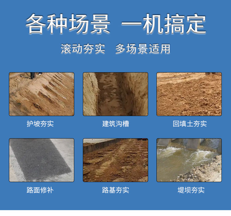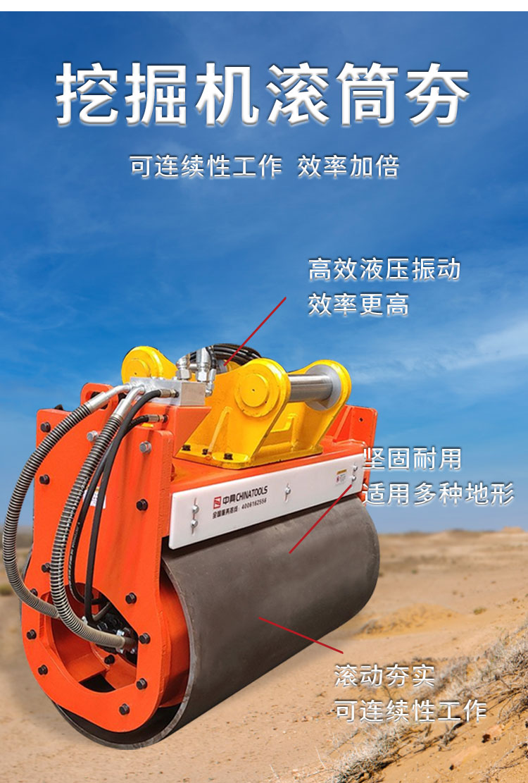 中具挖掘机液压滚筒夯斜坡高频振动夯操作松土捣实机打夯机