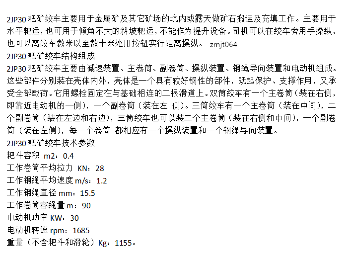 2JP30耙矿绞车安全提升隔爆型运输设备可定制