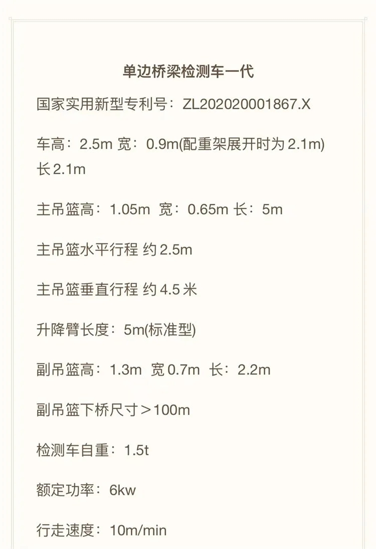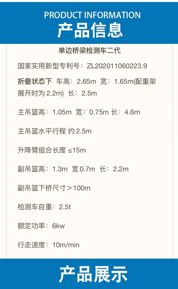 产品特点 | 桥梁移动检测检修吊篮车 | ||