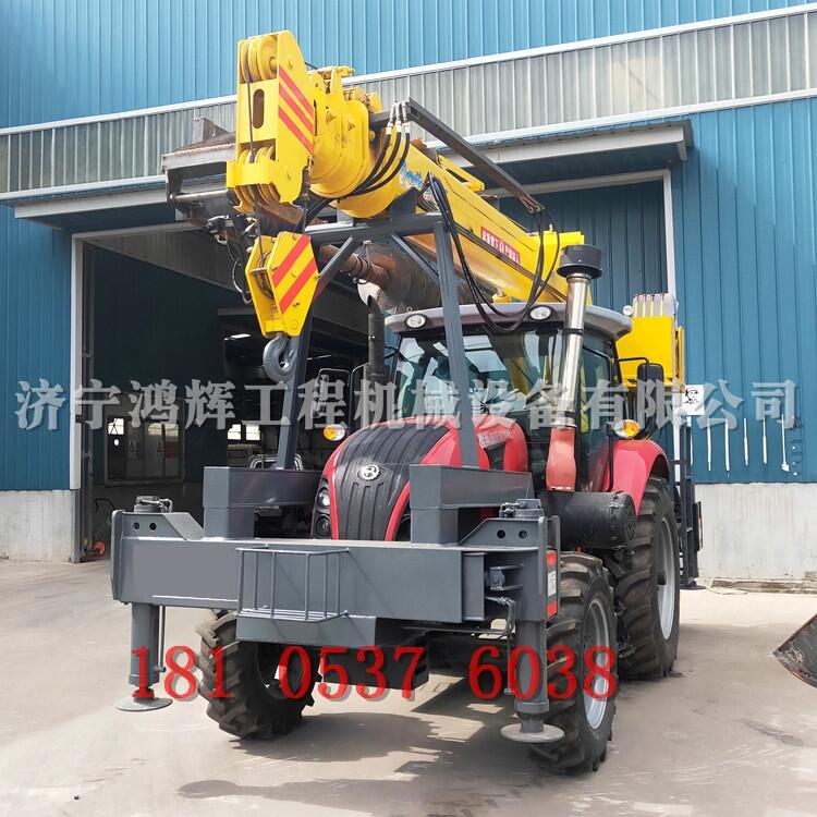 新款拖拉机吊车电线杆打桩机 打坑立柱机 专业路灯杆吊打一体机