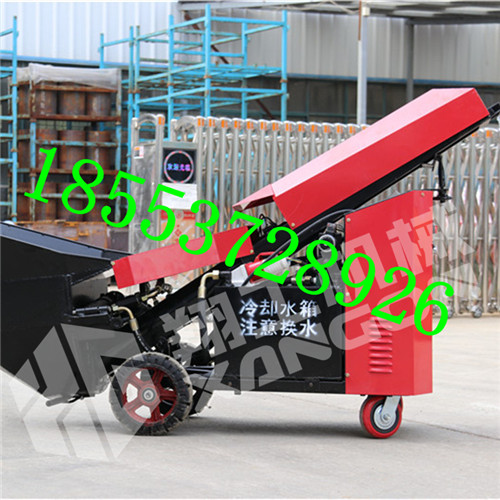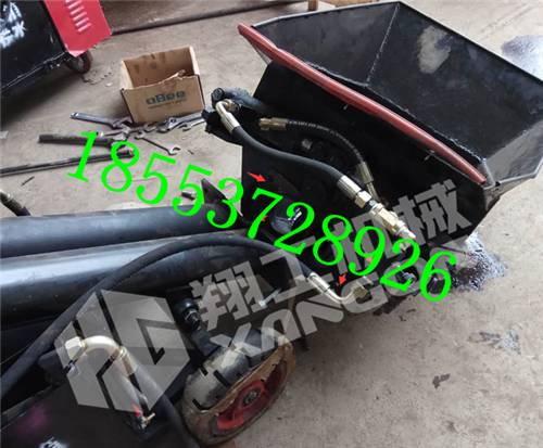 我们这款泵是采用德国技术研发,整体体积小,移动方便,料斗可以调节高度方便上料,电机采用台湾电机,小电机3.75kw的输送能力强,实现了小马拉大车的理念,因为采用的液压缸长度在1.2m,整体的压力增大,是天泵原理。水冷降温在夏季使用的时候避免因温度过高而影响输送能力的状况发生。
