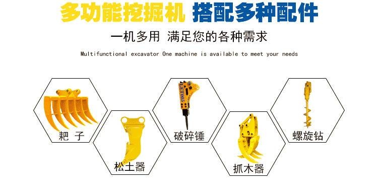 ●可实现‘一机多用’,具有挖掘、破碎、钻孔、推土、抓料等多种功能,可快速更换附件,设备利用率大大提高;