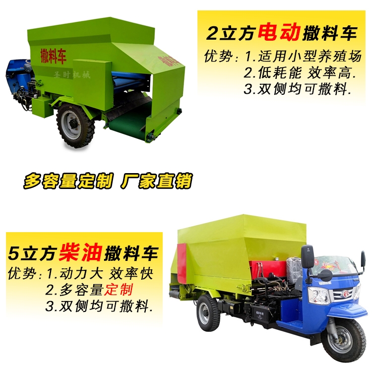 1、电动喂料车分羊场饲喂撒料机和牛场饲喂撒料机。