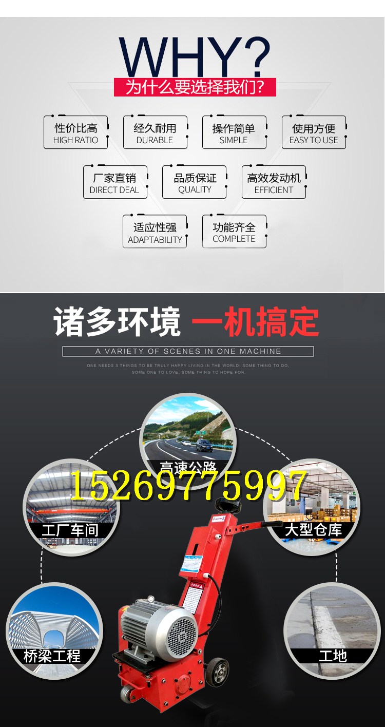 小型铣刨机用于桥面翻新加固,旧混凝土地面重新摊铺,市政道路局部修整拉毛,高铁路面施工以及交通标线清除等。