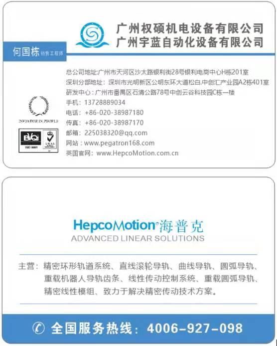 主营业务:HepcoMotion环形导轨系统,高速环形线,精密环形导轨,V型滚轮导轨,重载矩形滚轮导轨,V型滚轮轴承,高速直线模组,等