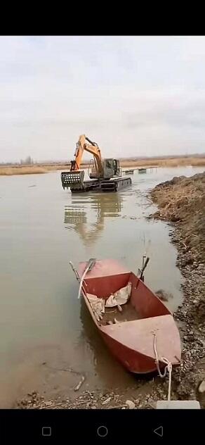 江南湿地挖掘机租赁供应水路挖掘机租赁 主业务范围:销售整机,订做底盘,定做超长臂等特种工作装置以及租赁挖掘机和对外承接工程。其中对外承接工程包括:河道清淤;围堤加高;加固;修路;开发大、中、小型湖泊切块;鱼池升级改造等工程业务。 3)增加了船体的安全性。一旦在意外情况发生时,如果一条链条发生断裂,作为备用链条可以保证传统能从水中驶离,安全性