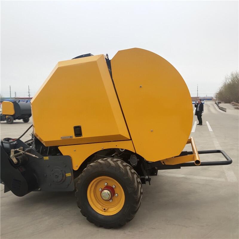 该圆捆性能自动完成牧草,水稻、小麦和经揉搓的玉米秸杆的捡拾,打捆和放捆,用于干,青牧草,水稻,小麦,破碎摧毁后的玉米秸杆自动收集捆扎,便于运输,贮存及深加工,可与包膜机配套,实现青贮饲料的包膜。