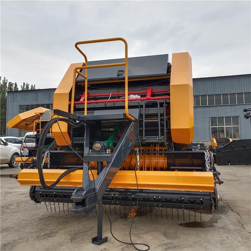 行走式打捆机是我公司开发的实用性农业机具,并结合我国农业收获的实际情况和特点研制而成。行走式秸秆打捆机是将农村剩余的秸秆和牧草,如玉米秸秆、稻草、谷草、花生秸和羊草等压捆成型,主要用于牛羊等反刍动物的饲料,可作为牧区的储备饲料,同时解决了饲草的储存和运输问题。麦秸秆打捆机主要由捡拾器、打捆机构、压捆室、压缩活塞、传动系统和机架等部分组成。该设备由拖拉机作为牵引横跨在秸秆上前进行走,匹配动力35-50马力,由拖拉机动力轴作为输出动力,自动拾取、自动喂入、自动打捆、自动切绳、并可以通过部件的调整,来改变打捆时草捆的密度,自动放捆等工序一次完成,使打出的草捆不散、不凌乱、并且一字排开在地面上。大大降低了劳动强度,是生物质秸秆发电厂,养殖户设备。