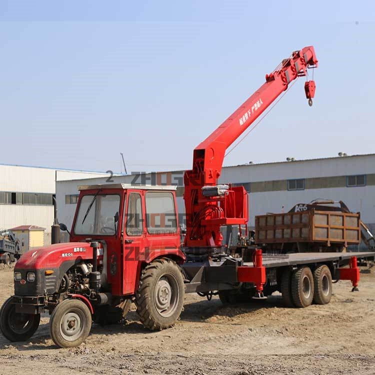 拖拉机起重机大大摆脱了普通吊车受地形限制的局限性,可以方便引用于狭窄的小巷道路,乡间田野,水田,丘陵等地带。拖拉机平板吊车特别适合于电力施工单位及其他在狭窄区域能作业的施工单位。拖拉机平板吊是我厂设计制造的一种用于吊装运输电线杆、钢筋等尺寸较长货物的设备,整车配置可根据要求定制。
