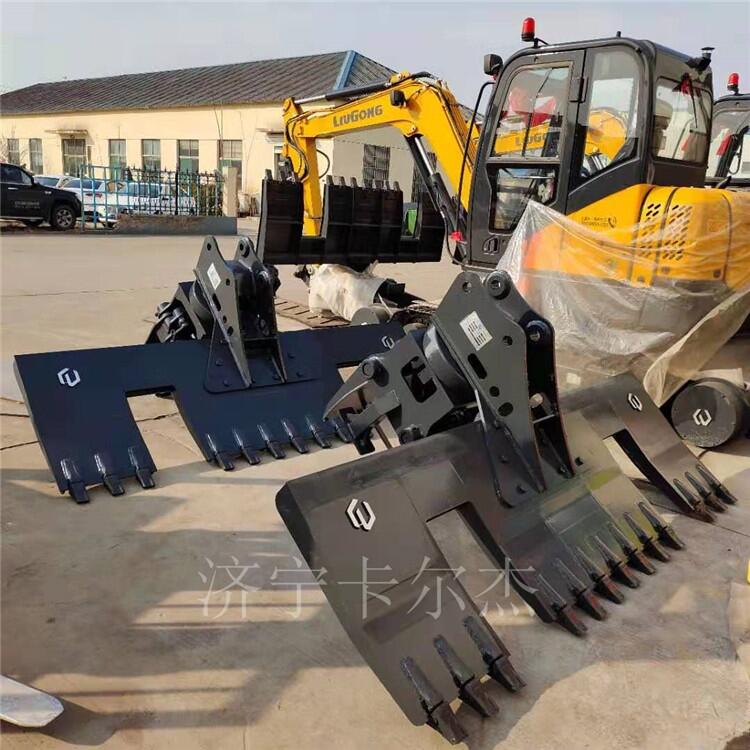 挖掘机枕木夹具是我公司新设计生产的铁路维护属具工作装置之一,它是可以通过快换连接器安装到挖掘机上的前端工作装置。分为横置式、伸缩式(5抓、7抓等)。适用于5-16吨挖掘机使用。
