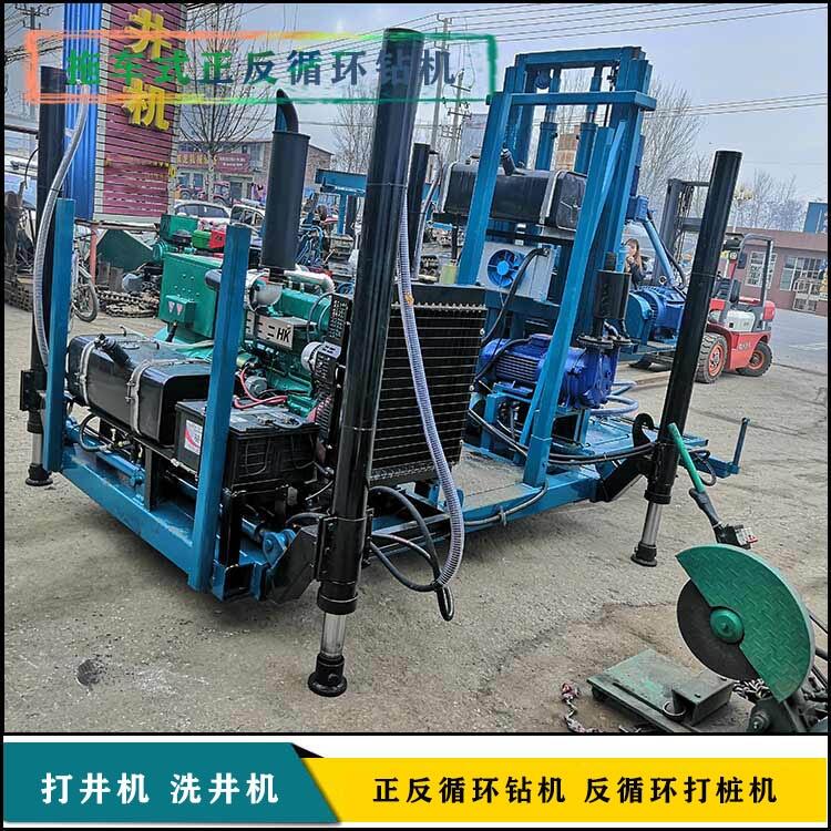 6寸牵引式反循环钻机,可以直接用车拖着走,行走比较方便,架子上可以放钻杆;可以使用三相电或者发电机组;