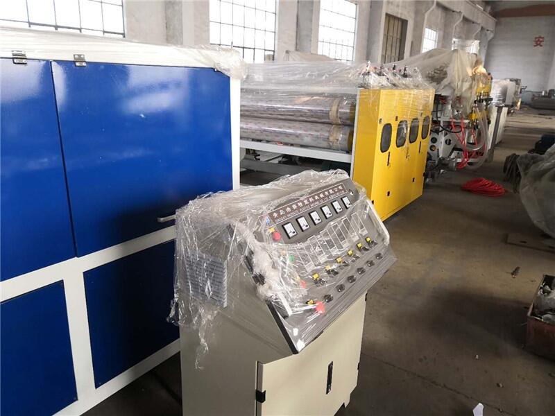 塑料中空格子板生产线 PC、PE、PP中空格子板生产线 生产线简介 该生产线用于PC、PE、PP中空格子板的连续生产,产品广泛用于建筑装饰、广告布置、公路噪音、隔音以及包装。 PE、PP中空格子板可以代替纸箱做包装箱,质量轻、强度高、防潮、防腐。板材成品宽度700mm-2100mm,厚度:2-12mm 挤出机:螺杆的特殊设计,先进的控温系统,确保塑料的塑化良好及高产量稳定挤出。 换网器:选用液压快速换网装置,使换网过程快速有效;双工位和特殊的密封结构,保证换网器稳定工作。 模具:模具采用优质合金钢制成,带有高活动性的节流装置,使料流在口模分布压力均匀一致;上下口模的差动调节,确保了上下壁厚的均匀。
