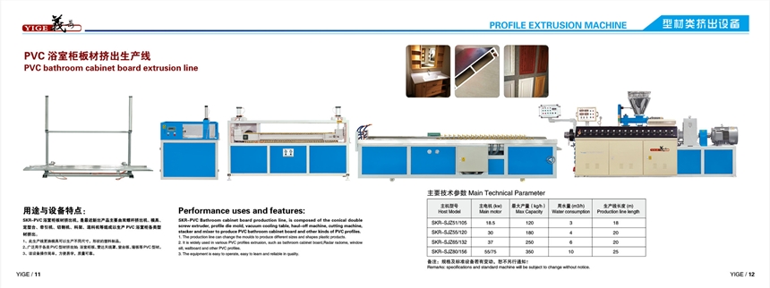该生产线采用专门设计的SJZ80/SJZ92锥形双螺杆挤出机,采用直流调速拖动,进口品牌温控仪表,具有调速范围广,温控精度高,操作方便可靠等优点。辅机由真空定型台、风冷冷却托架,8组对辊牵引机、纵横切割机及落料平台组成。配备大型强制冷却装置确保板材定型效果。8组对辊牵引机采用精密减速电机及变频器,具有结构合理、牵引力大,牵引稳定等优点。纵横切割机具有工作可靠准确,切割精度高的优点,落料平台附有可移动的推料小车和特制的橡胶保护层,具有不伤料,使用简便等优点。辅机机组采用可编程电脑控制或国产名牌控制系统,整机控制可靠稳定。