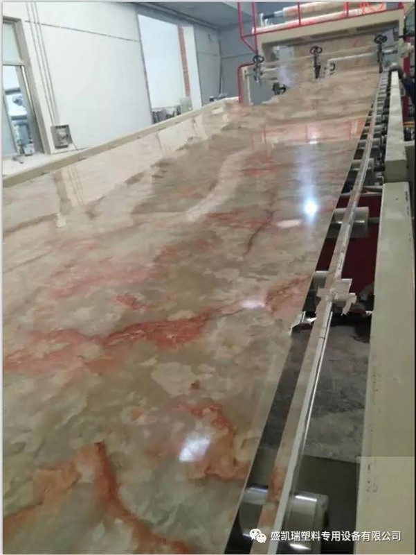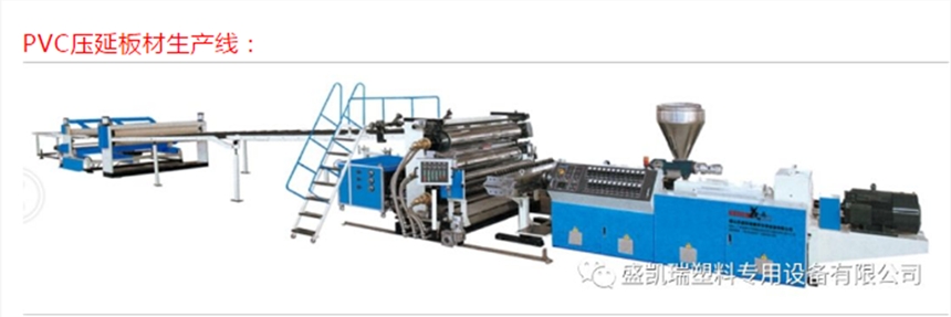 本生产线主要由锥形双螺杆挤出机,大板模具,三辊压延机,排辊托架冷装置,裁边装置,牵引机,自动切割机,自动翻版等组成。高配置的挤出机,配有专门的螺杆以及PLC或RKC温控表控制模块,温度误差:±0.1℃,操作直观易懂,安全可靠。螺杆,料筒,经优化设计,并采用高性能双合金刚专业加工,使整机具有塑化均匀,挤出量稳定,产量高,寿命长等优点。