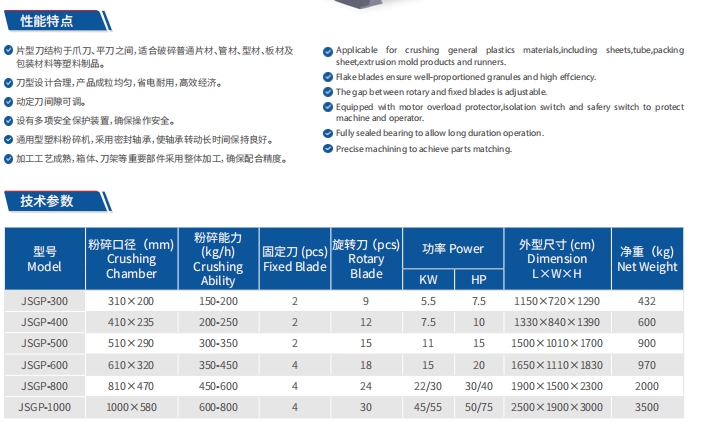 对于箱类、薄管件、吹塑件、瓶、壳等塑料的回收。塑料粉碎机操作方便,换刀片简便快捷,平型刀宽大的结构适合破碎大体积薄壁、薄料产品,提高破碎效率;设有电控安全设计,料斗采用双层结构,内填隔音材料,马达附有超负荷保护装置、电源设备具有良好的安全性及环保,省电耐用。张家口切料机 PVC PE PP塑料粉碎机 秦皇岛粉碎机