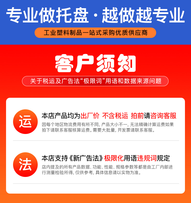 注: 样册中标注的托盘额定载荷是按标准要求试验得到的载荷参数,指在平均且均匀分布载 荷的情况下托盘的装载能力。在实际使用中托盘会受环境条件、货物的包装形式及使用方法的影响而变化,具体了解需向供方咨询。