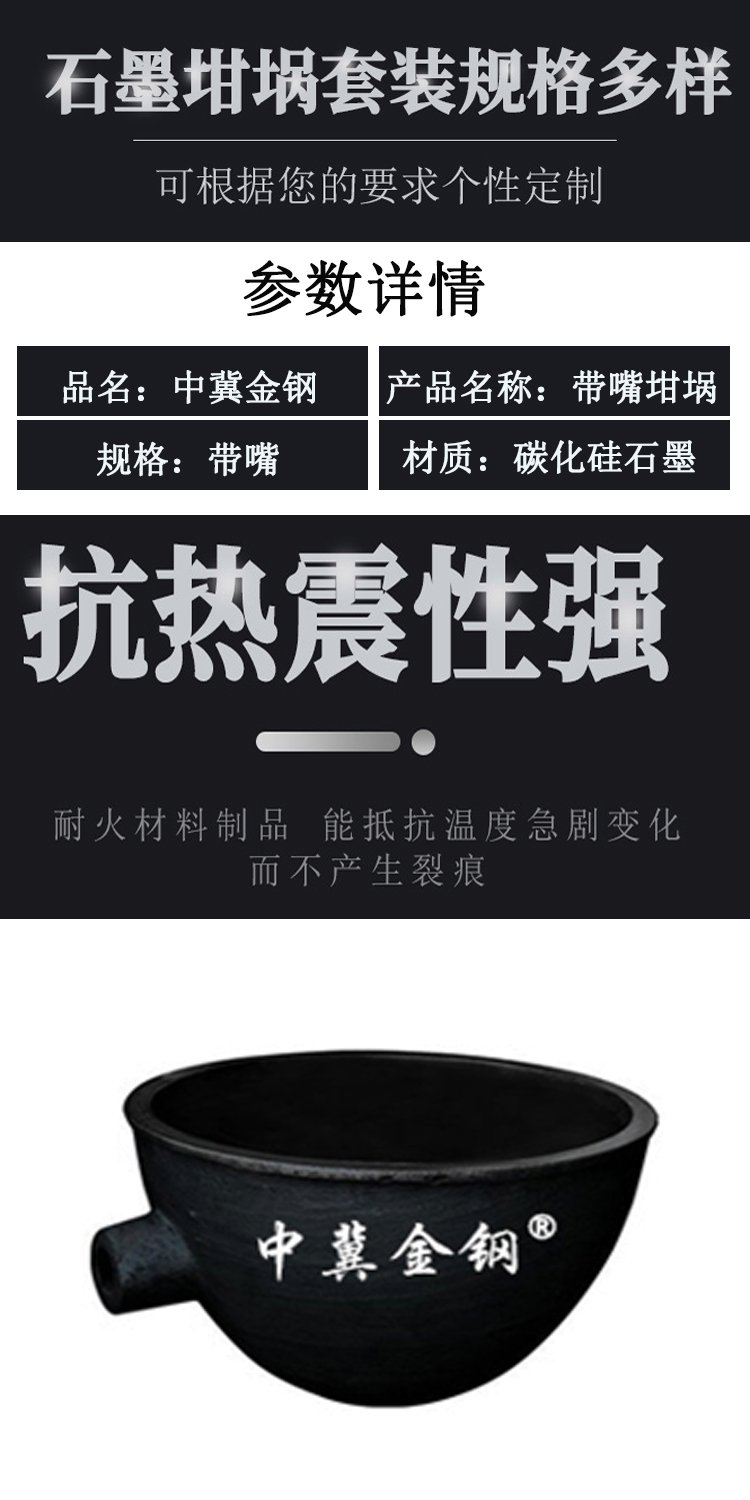 津大小型号带嘴碳化硅坩埚密度高源头工厂可定制