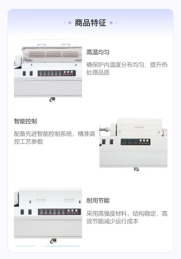 高温回转炉采用硅钼棒双温区加热,每个温区可30段程序控温系统,移相触发、可控硅控制,炉膛采用氧化铝多晶体纤维材料,温场均衡,双层炉壳间配有风冷系统,能快速升温;加装有密封自动送料器、密封收料装置。炉体可倾斜,炉管可360度旋转。该设备专业应用于锂离子电池的阴极材料上包覆导电层,同时也可用CVD方式制备si/c阳极材料。