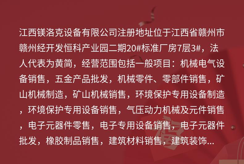 江西镁洛克设备有限公司 智能客服智能客服在线解答,若涉及资金打款事宜,务必与厂家进行电话确认。
