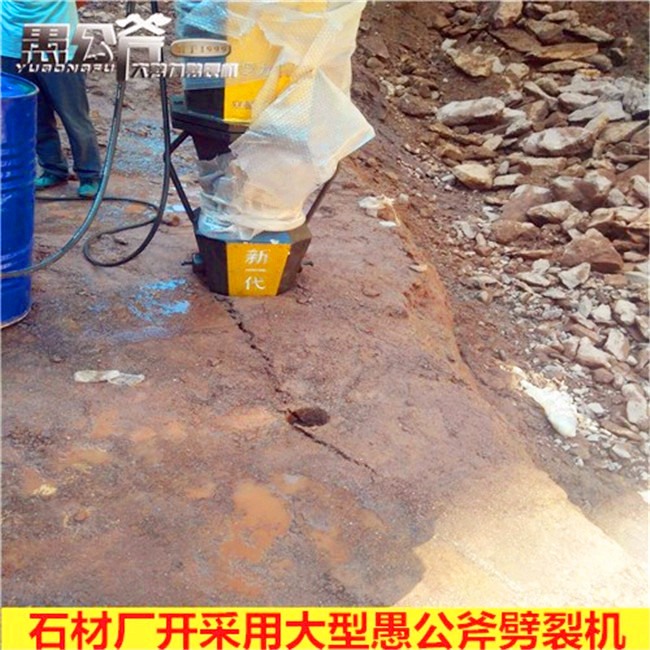 使用岩石的抗拉强度远低于抗压强度的特性,使用楔块的原理,在以钻孔内部放进劈裂机楔块模组。由液压供给动力,令岩石由里往外受力,损坏岩石内部构造,然后到达岩石割裂的意图,填补了工程不能爆炸、岩石太硬,破碎锤不足以破拆的技能空白。