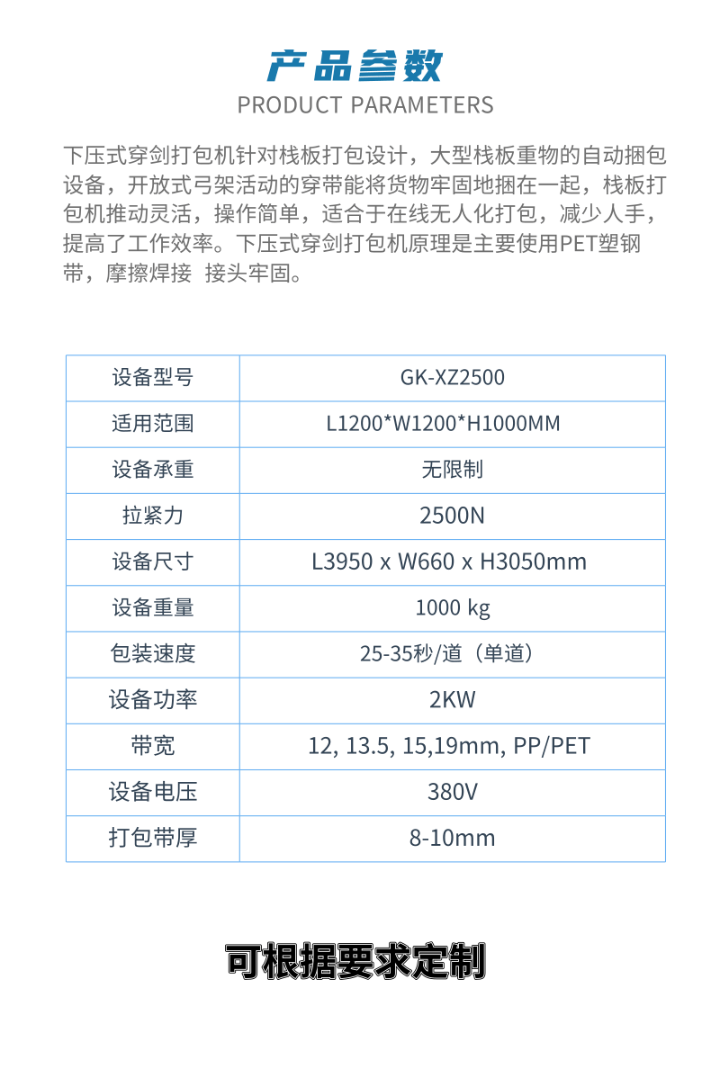 光括包装托盘穿剑式打包机全自动在线式PET捆扎机