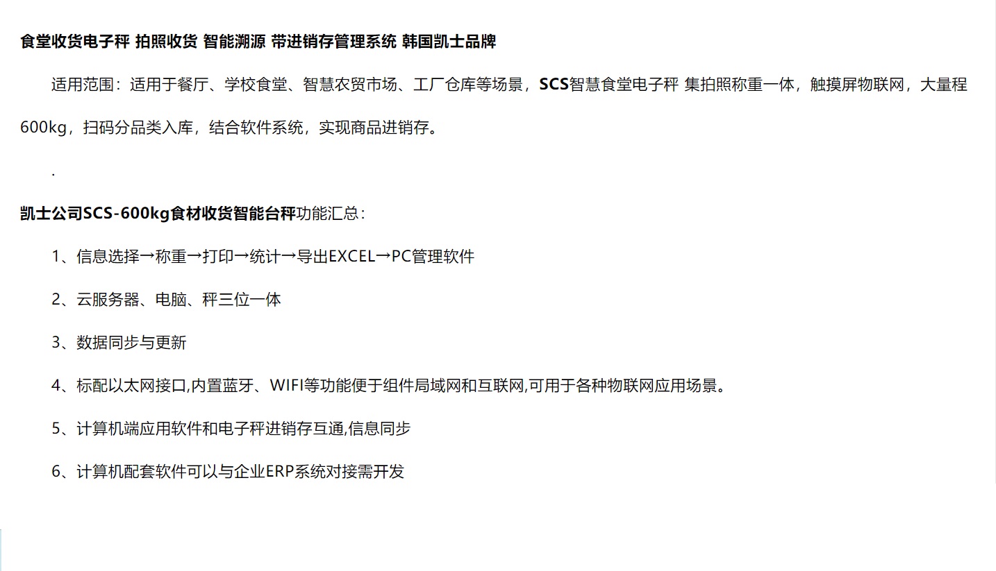 用途范围 | 食堂食材验收智能溯源秤 | ||