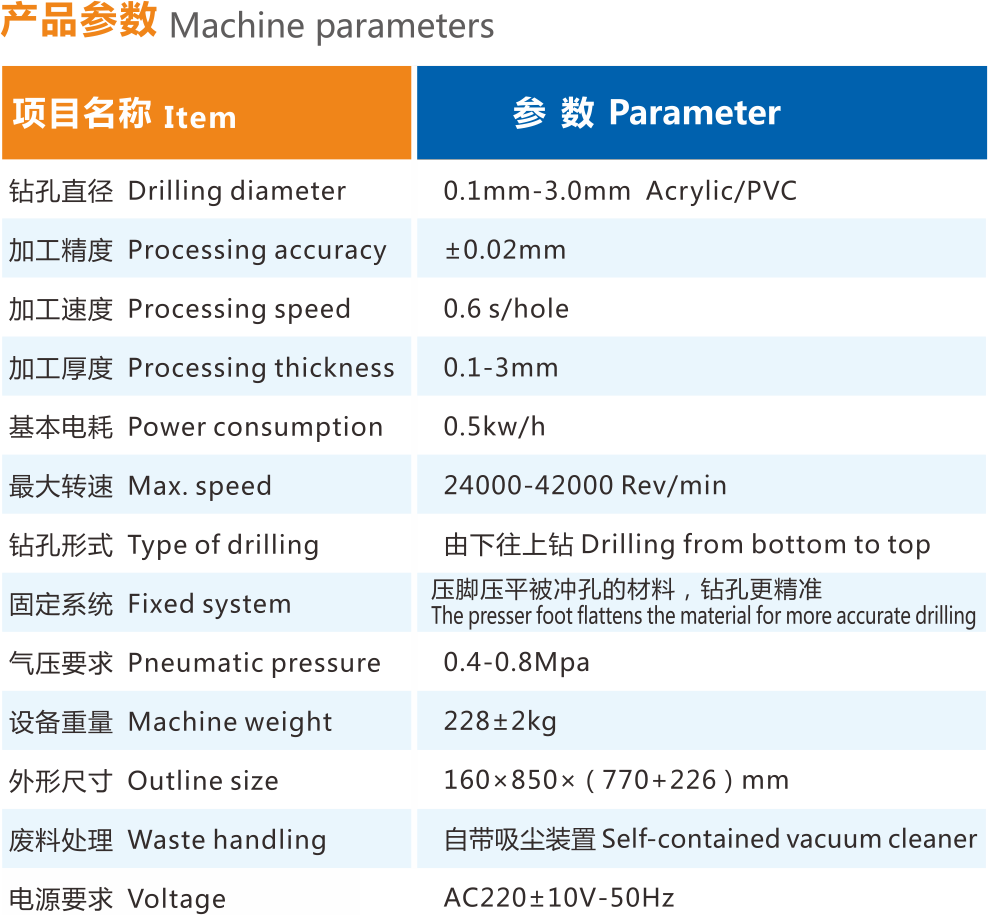 钻孔直径 | 0.1mm-3.0mm Acrylic/PVC | ||