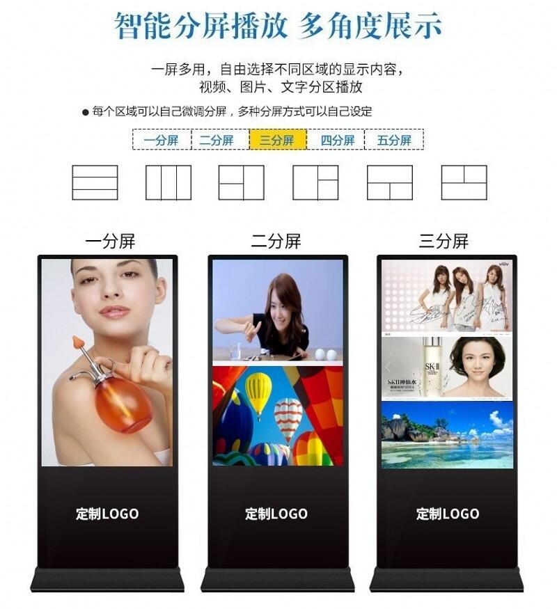 u 功能齐全:支持横竖屏播放,视频分屏,滚动字幕,定时开关,USB数据导入等功能。