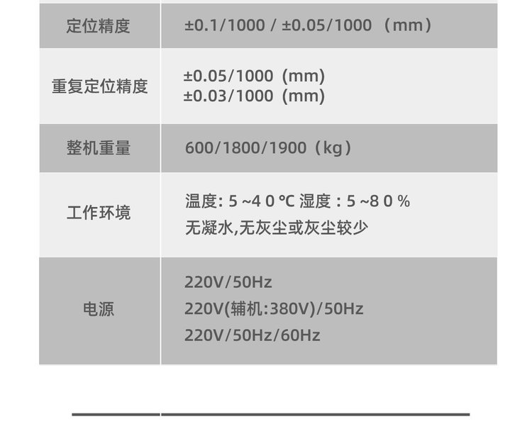 重复定位精度(mm) | ±0.05/1000 ±0.03/1000 | ||