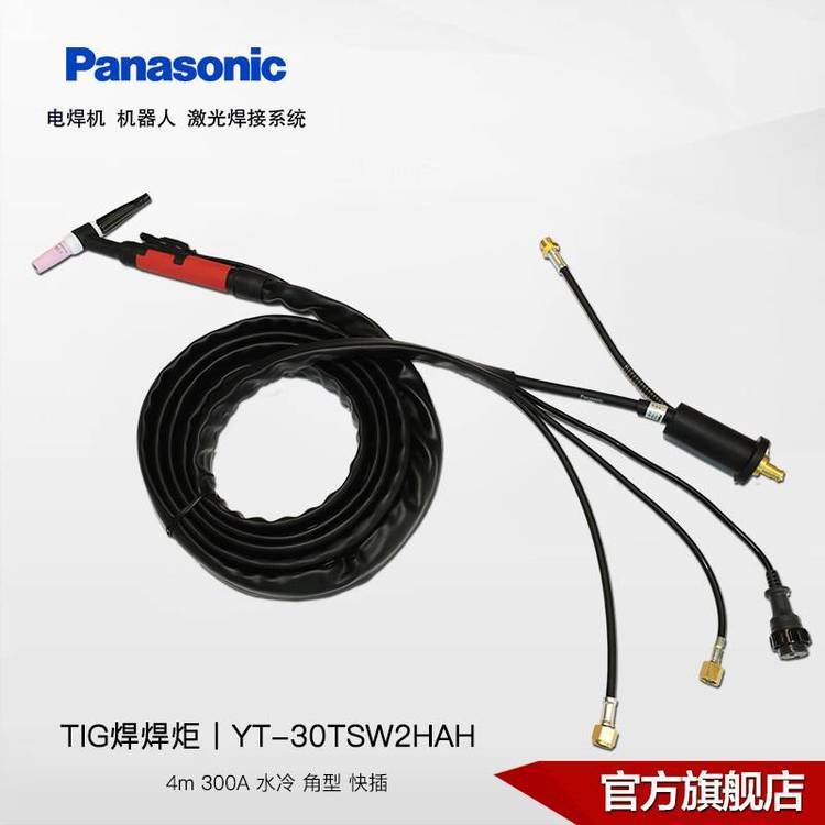松下30TSW2系列TIG焊炬有端子和快插两种接口,电缆长度有4米标准规格,也可以根据需要定制长度,建议不超过20米。枪头有角型(弯柄,型号为30TSW2)1种型式,采用水冷方式。