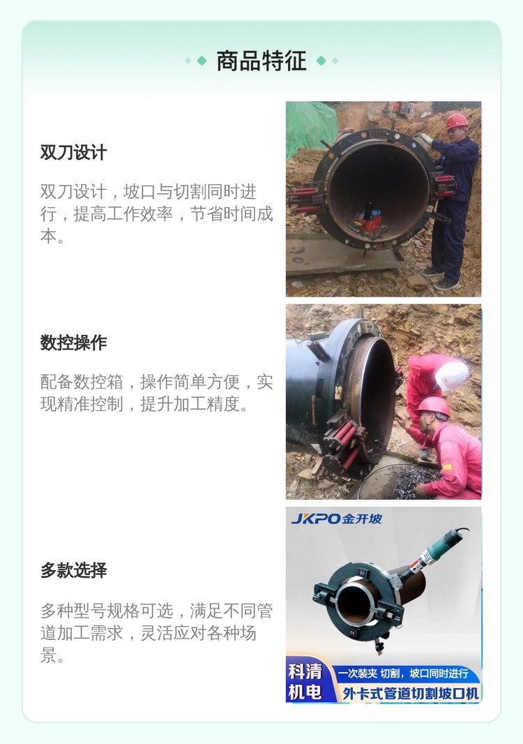 外卡式管道切割坡口机高效切管坡口一体机双刀设计