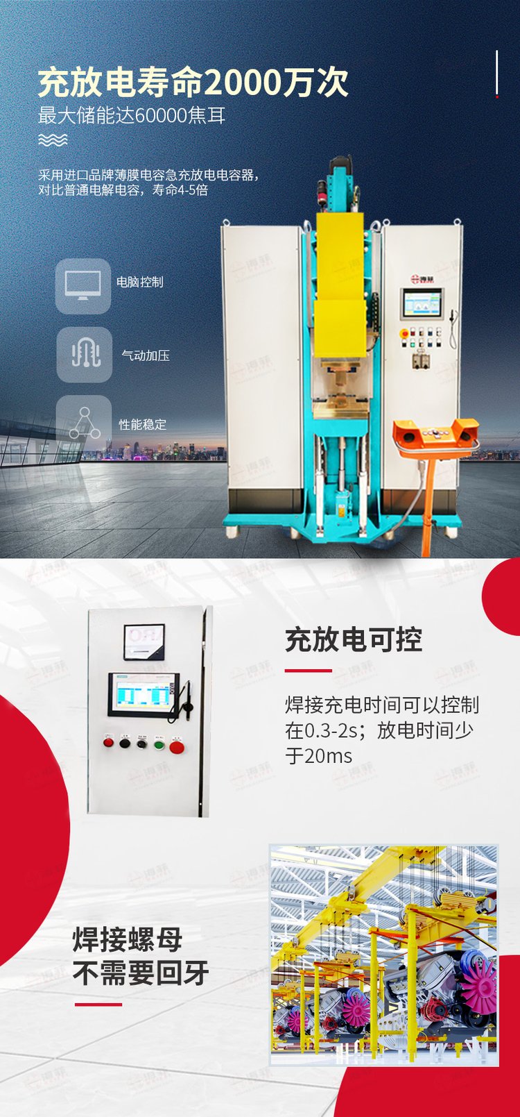 设备应用 | 汽车制造行业高强度钢、热成型钢的点焊和螺母凸焊, 也可应用于普通的低碳钢板、不锈钢板、镀锌板、铝板、线材的点焊、多点凸焊, 以及高低压电气行业铜线的电阻钎焊、点焊,银点和铜板的钎焊、复合银点焊接等 | ||