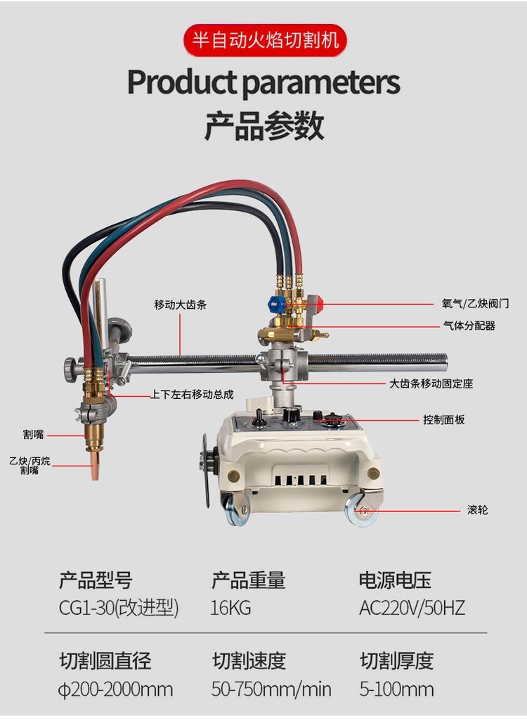半自动火焰切割机便捷式控制面板CG1-30全新升级火焰切割高强度