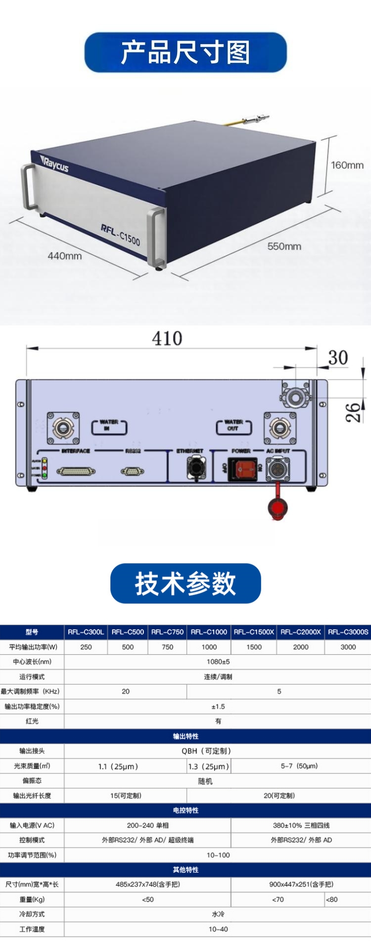锐科Raycus? RCF-C1500/RFL-C1500H单模光纤激光器 包装 | 盒装 | ||