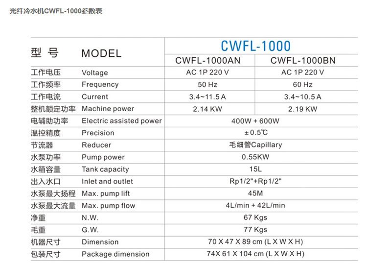 适用范围光纤激光器用水冷机