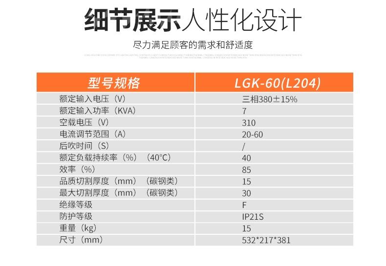 1、采用先进的IGBT逆变技术,逆变频率为28KHZ,显著减小了切割机的体积和重量。