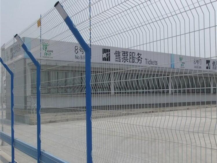3.在机场围界铁丝网的横向加装四道折弯加强筋,在整体成本增加不多的同时,使网面强度和美感显著增加。